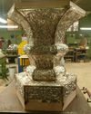 El tiempo pasaba y las noticias de la peana brillaban por su ausencia. Algo preocupados decidimos personarnos en la orfebrería. Comprobamos muy sorprendidos que ni siquiera habían iniciado los trabajos y lo que es peor, la confirmación del incumplimiento de la fecha comprometida inicialmente. Y el cabreo pertinente. Exigimos una reunión urgente con los responsables de la empresa. Nos reunimos con los dueños, los trabajadores y el comité de empresa. Tras una dura negociación, conseguimos un nuevo compromiso sobre la fecha prevista: Abril. Y así fue. En abril de 2011, Nuestra Señora de Valverde tuvo su peana. Gracias a todos por el esfuerzo.